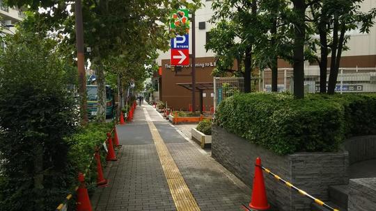 さらに進むと道が細くなりますが、ここも直進します。ライフ看板が少しずつ大きく見えてきます。
