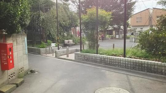 突き当りを右に曲がるとすぐ公園があります。ここは左へ向かいます。