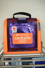 心臓がけいれんし血液を流すポンプ機能を失った状態(心室細動)になった心臓に対して、電気ショックを与え、正常なリズムに戻すための医療機器です。万が一当院に在院中に心室細動が起こってしまった場合はもちろんのこと、近隣の路上などにおいても起こってしまった場合利用していただけるようにと考えております。最近では、一般市民の方がAEDを使用して救命した事例も増えてきました。このような備えをするのはたとえ歯科といえども医療機関として当然のことと考えます。
