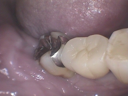 右下 6 番単独欠損ですが、中等度歯周病(水平的骨吸収あり)のため、ブリッジでの治療ですと隣接歯の寿命を極端に縮めてしまう可能性があります。