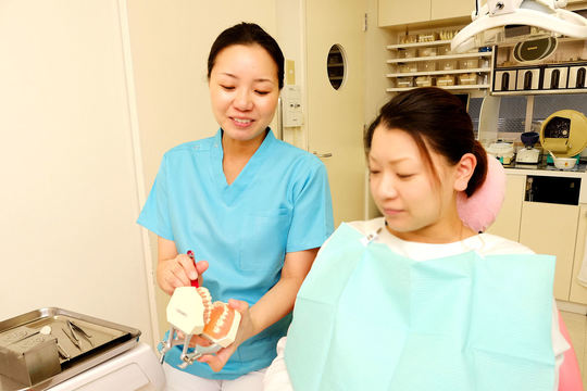 担当の歯科衛生士が、歯ぐきの炎症を改善するのに効果的な、こだわりの歯磨き方法をお教え。当院独自の歯ブラシの使い方があります。歯並びや歯磨き技術の習得状況に応じて、歯ぐきの炎症をしっかり改善できるよう、バリエーションの豊富な歯磨き方法から、患者さまのお口に合った方法をアドバイスします。