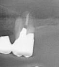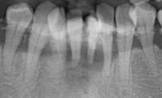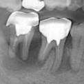 左の写真のレントゲンです。奥から 2 番目の歯は動揺がそれほどありませんでしたので、ポケット内の歯石除去を徹底し、根管治療の上保存しました。